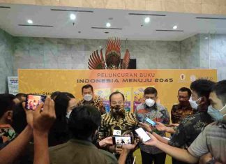Ket.Foto Utama: Gubernur Lemhannas RI Letjen TNI (Purn) Agus Widjojo, saat diwawancarai awak media usai peluncuran buku.